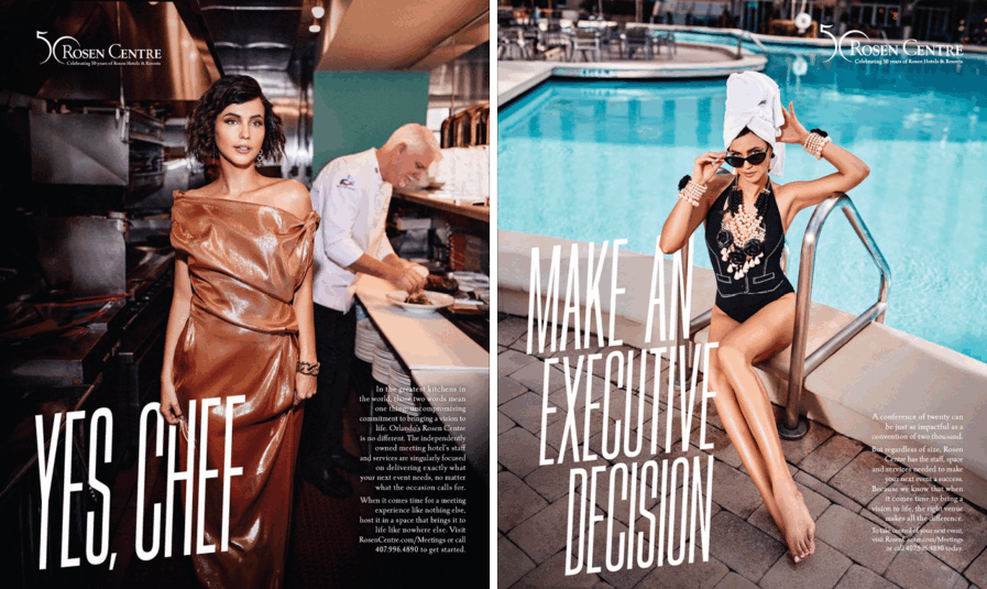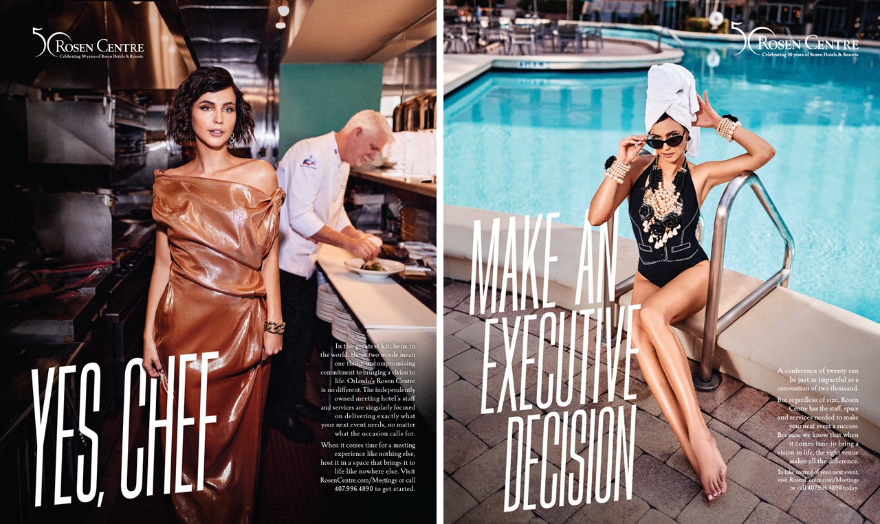 Rosen Hotels & Resorts wanted to rise above the monotoned, sea-of-sameness campaigns typical of the meeting hotel space and stand out as the pinnacle of hotels for meeting planners throughout the United States. &Barr and world-renowned editorial photographer Mark DeLong cut through the clutter of traditional hotel marketing to deliver a high-risk, first-of-its-kind campaign for Rosen Hotels & Resorts that paints event expectations in a brand new light.