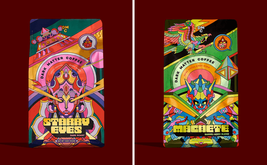 For nearly a decade, Zmmr™ has thrived at the intersection of artistry and strategy, crafting visual narratives that push brands beyond the expected. Their recent collaboration with Dark Matter Coffee reimagines the beloved Portfolio Blends—Unicorn Blood, A Love Supreme, Starry Eyes, and Machete—through a cosmic, sci-fi-infused lens, balancing bold innovation with the deep loyalty of longtime fans. With meticulous research, layered storytelling, and Raul Urias’ intricate illustrations, Zmmr™ transforms packaging into an immersive journey, proving once again that creativity knows no bounds when given the space to flourish.