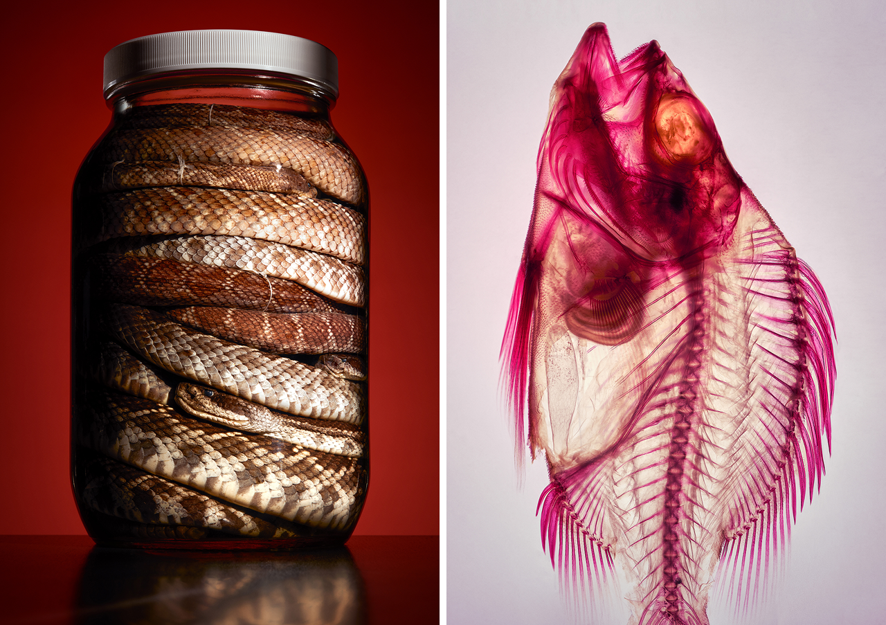 “Collective Knowledge from Our Changing World” is a new exhibition at the Natural History Museum of Los Angeles County. The exhibition showcases twelve large-scale photographs and a stunning video installation created by photographer Craig Cutler and creative director Scott Bremner. The exhibit offers a fresh perspective on NHM’s vast collection. The images highlight specimens and artifacts rarely seen before, all shot with a very distinctive vision.