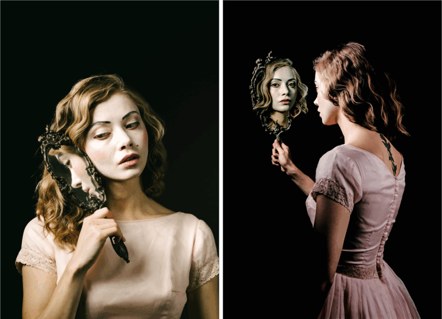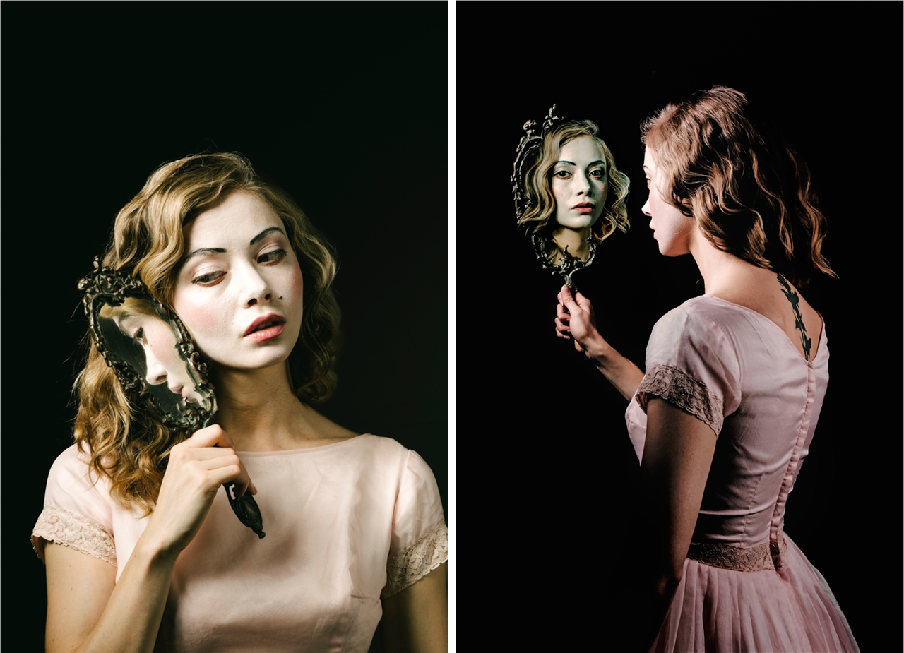 We had the shared understanding that the dynamic between what is seen and what is reflected needed depth—not just depth of image, but depth of meaning and emotion within both the larger frame and the frame within the crop. The mirror brings us to a deeper place of vulnerability, and with that, the trust increases to capture the very nature of the concept.