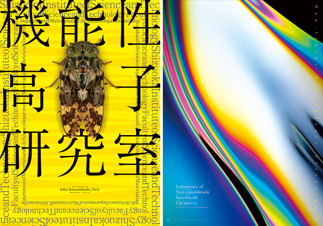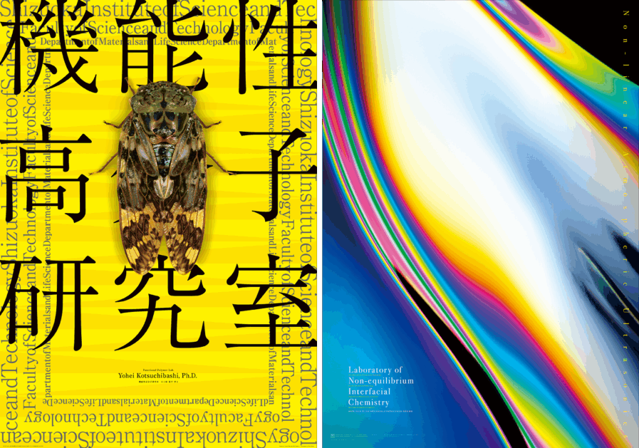 “The NIC” is a poster for a laboratory researching interfaces—the boundaries between different substances. Within this field, the lab focuses on the application of spontaneous interfacial convection. This phenomenon occurs when chemical reactions between two liquids (oil and water) create interfacial tension and an imbalance in flow along the interface. Therefore, I decided to create the visual image using the work of photographer Keita Otsuka, with whom we have a close relationship and who has provided work for various projects. This visual utilizes photography to visualize the refraction and dispersion of light that occurs when plastic is heated to soften it and then exposed to light. Through this photographic expression, which employs the distortion of plastic and the refraction of light, it represents the state of an interface caused by the chemical reaction between liquids.